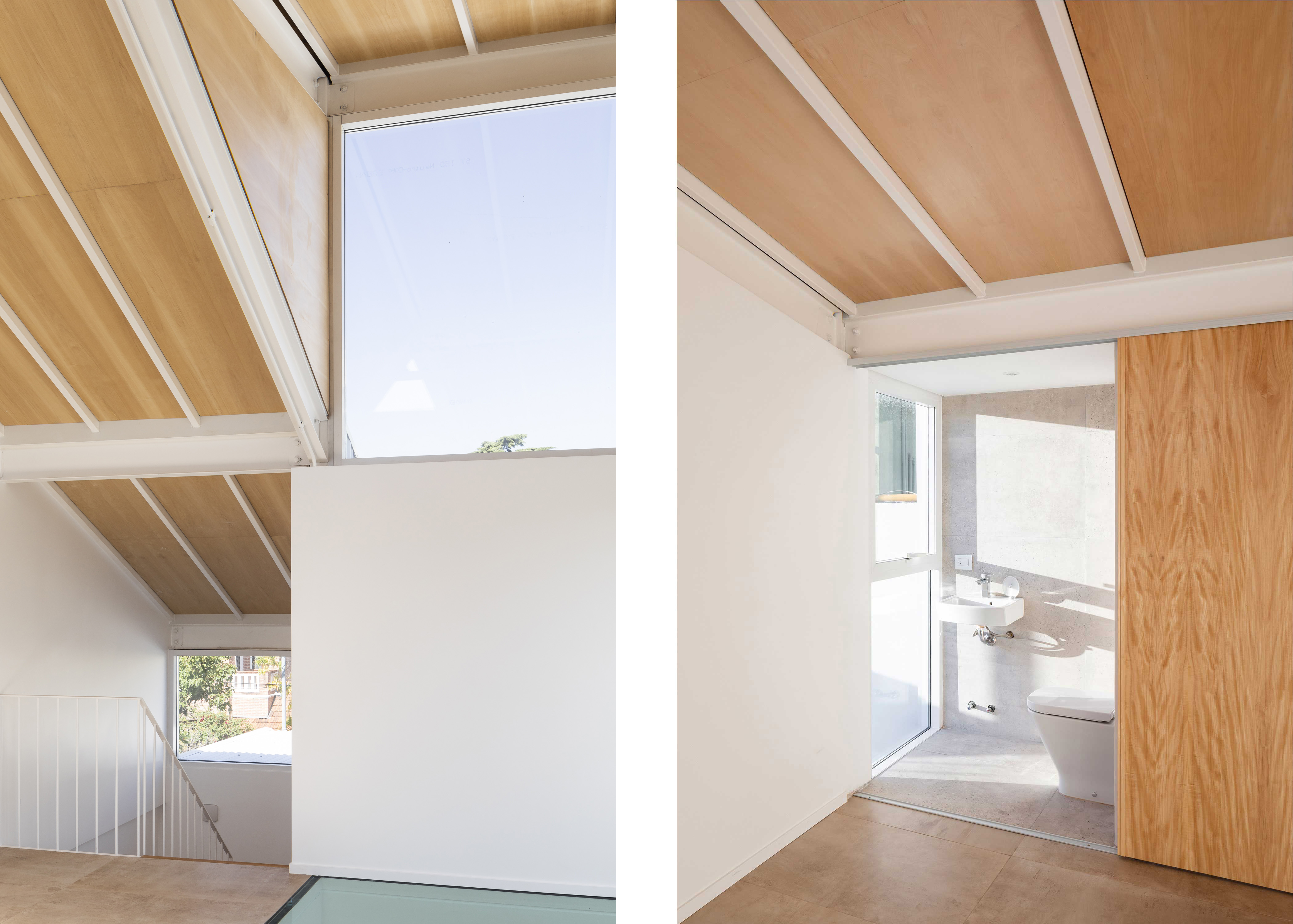 El proyecto se localiza en el Barrio de Villa Devoto en Buenos Aires, sobre en una avenida de alto tránsito de doble mano con boulevard. Sobre una parcela de poca profundidad y medianeras de gran altura, el proyecto se compacta y crece ampliando su construcción por encima de la planta baja, recuperando preexistencias sobre su frente y haciendo extensiva su ocupación, definiendo un patio con orientación norte. La casa se organiza en torno a este patio, que permite la ventilación y asoleamiento de todos los espacios, alojando una piscina y un sector de parrilla en planta baja. Se trata de una vivienda organizada en 3 niveles que distribuyen los usos sociales en su nivel inferior, usos de condición íntima y nocturna en primer piso y un segundo piso de programa difuso, y flexible (lugar de lectura / estudio / sala de fiestas / reuniones / etc). La conexión vertical entre sus niveles se realiza mediante una escalera de dos tramos discontinua que vincula sus niveles inferiores en una posición central de la planta y cambia de sentido y ubicación para conectar el último nivel. La tecnología del proyecto varía verticalmente, volviéndose más liviano en su estrato superior con una nueva envolvente metálica que unifica lo existente y lo nuevo, articulando las distintas etapas de construcción. El acabado de sus paramentos verticales exteriores en planta baja y primer piso se resuelven integralmente con un revestimiento de aluminio aletado blanco que protege y les da unidad a los distintos estratos constructivos (pre existencias – nuevas edificaciones masivas), mientras el volumen superior se resuelve con un sistema industrializado, estructura metálica y cerramiento en chapa acanalada blanca.